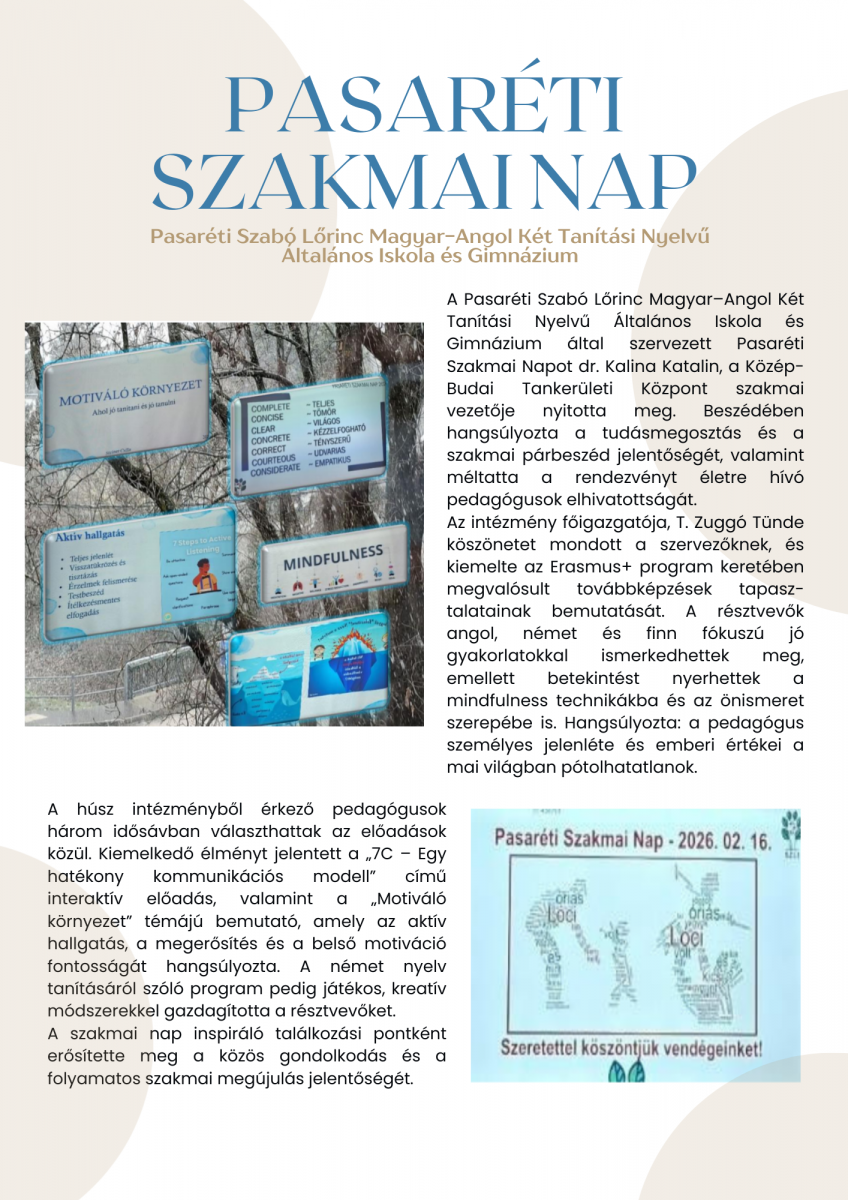 - kötetlen beszélgetés angol nyelven általános témákról (pl. család, szabadidő, időjárás, sport, közlekedés)